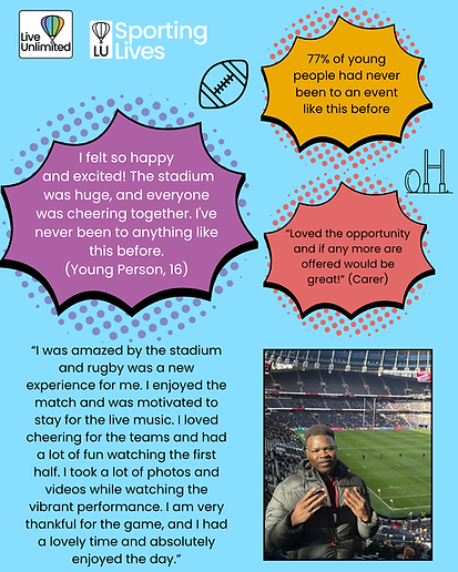On Saturday 28th March we took over 30 care-experienced young people and their friends and families for a day out to the Rugby Showdown VI at the Tottenham Hotspur Stadium. There was a women's match, live music from Dizzee Rascal, and a men's match. Thank you to Saracens for donating us the tickets, we had a great time!